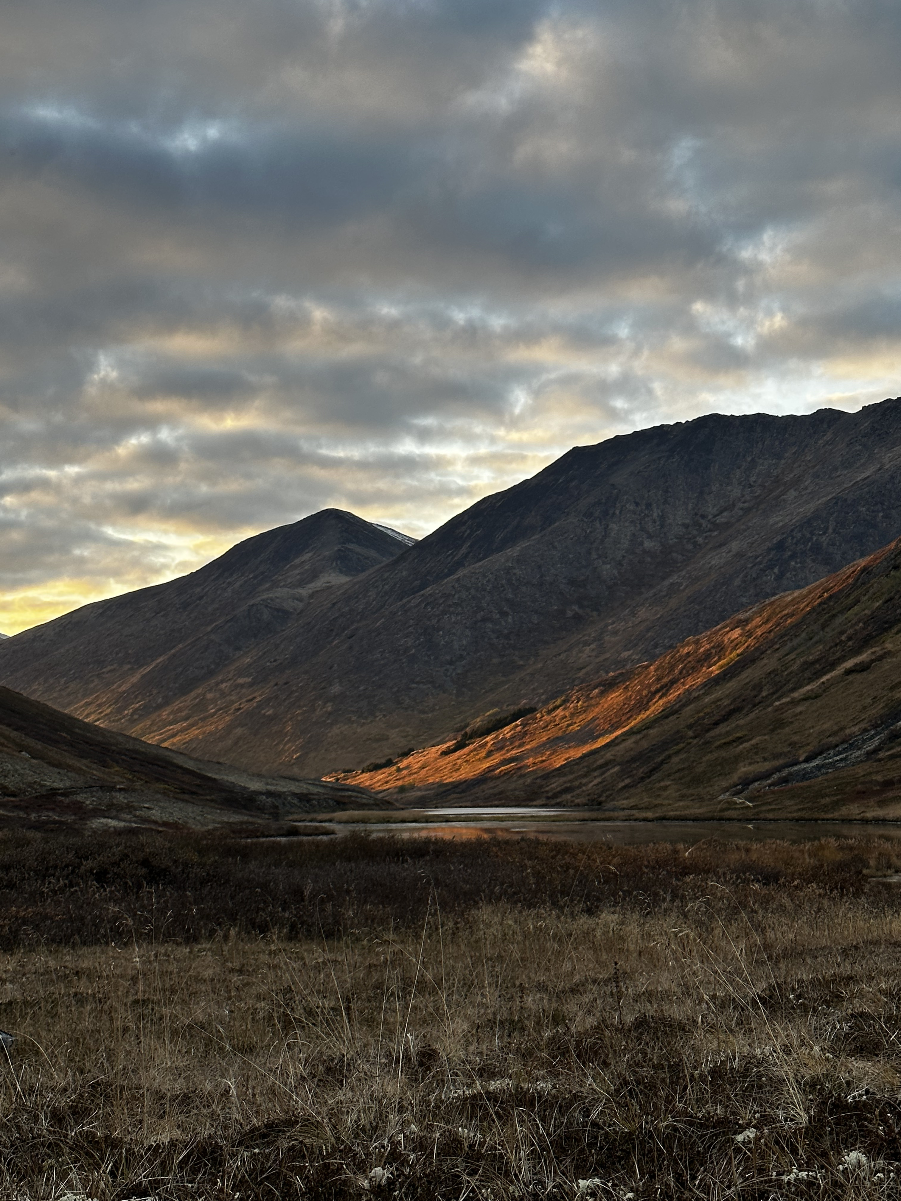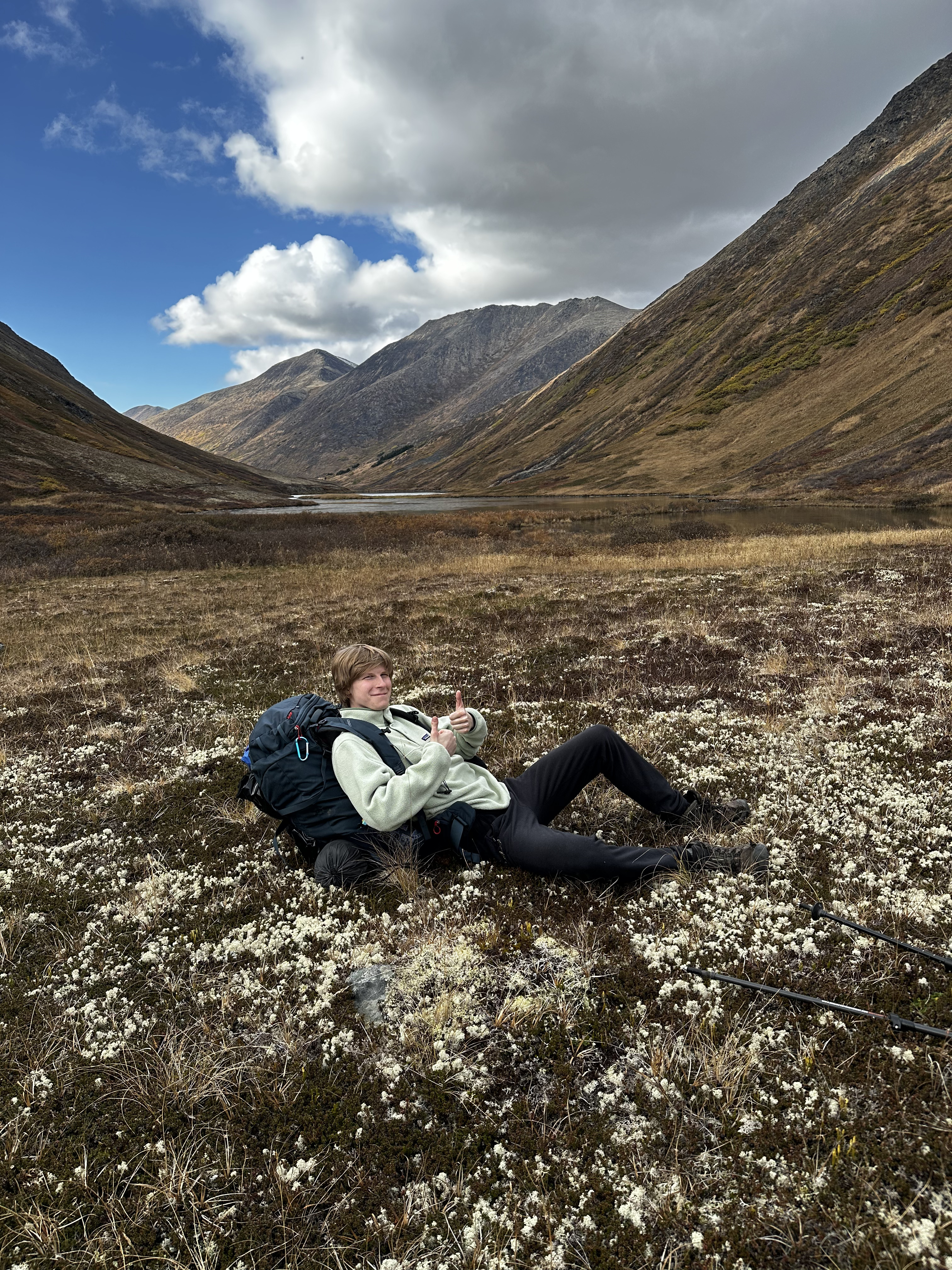 We parked at the Devils Pass Trailhead and followed Devils Creek up into the mountains. After that we simply camped out for the first night by Devils Pass Lake. This first day we did 13 km. For the second day, we headed northwest down the valley towards the Devil's Pass cabin by Juneau Creek. From there we hiked briefly northeast on the Resurrection Pass Trail and then cut across the marshy headwaters of Juneau Creek in order to climb over a saddle at the headwaters of East Creek. We then followed East Ceek for a little and then we headed southeast on the Summit Creek Trail. We finally climbed over a saddle into the headwaters of Summit Creek and followed the creek to a parking lot, where our instructor hitch hiked 6.5 miles back to the van to pick us up and take us back to Anchorage. For our second day we did 19.3 km for a total of around 32 km. Also I think I deleted my field recordings so thats kinda it.