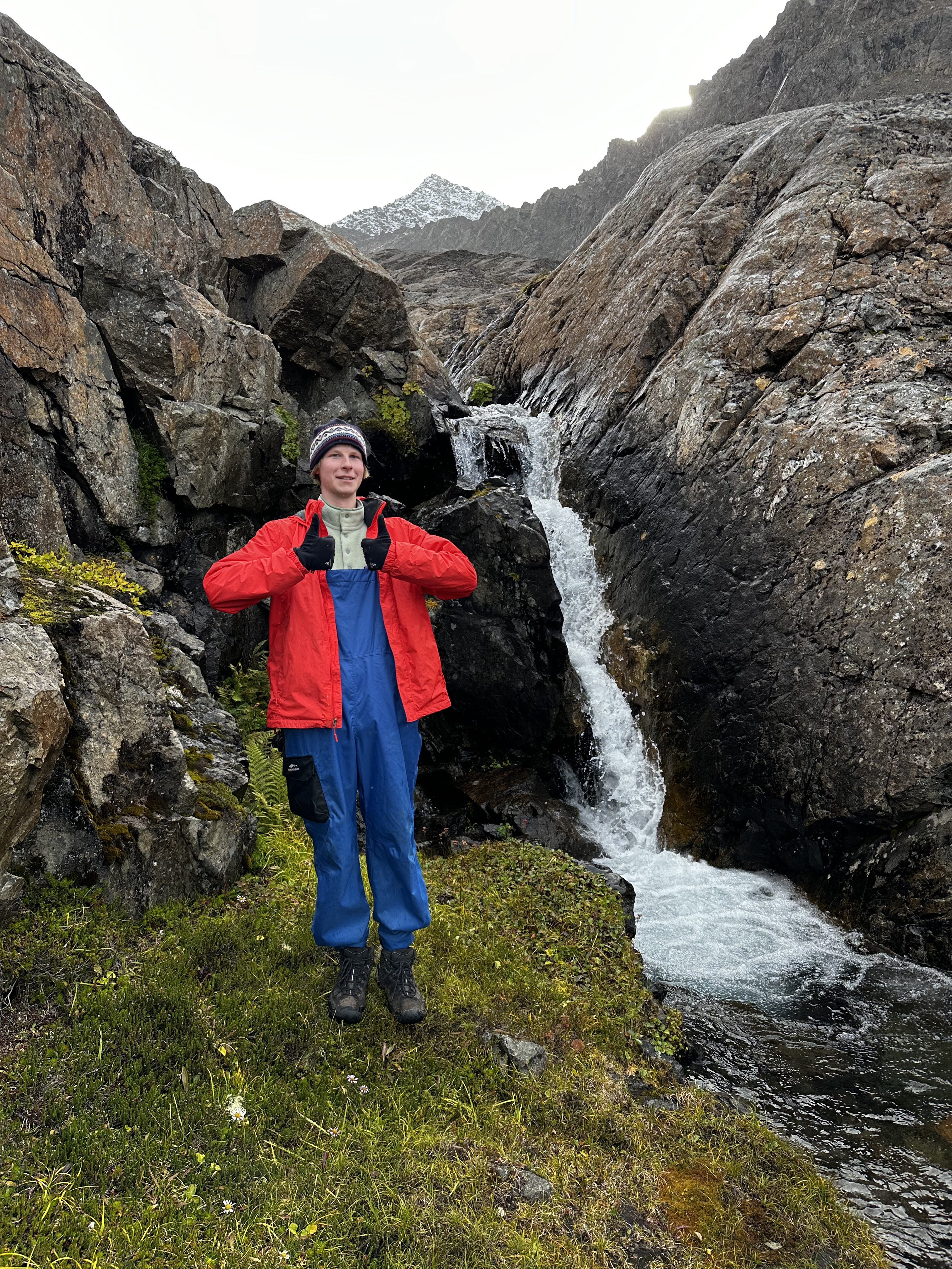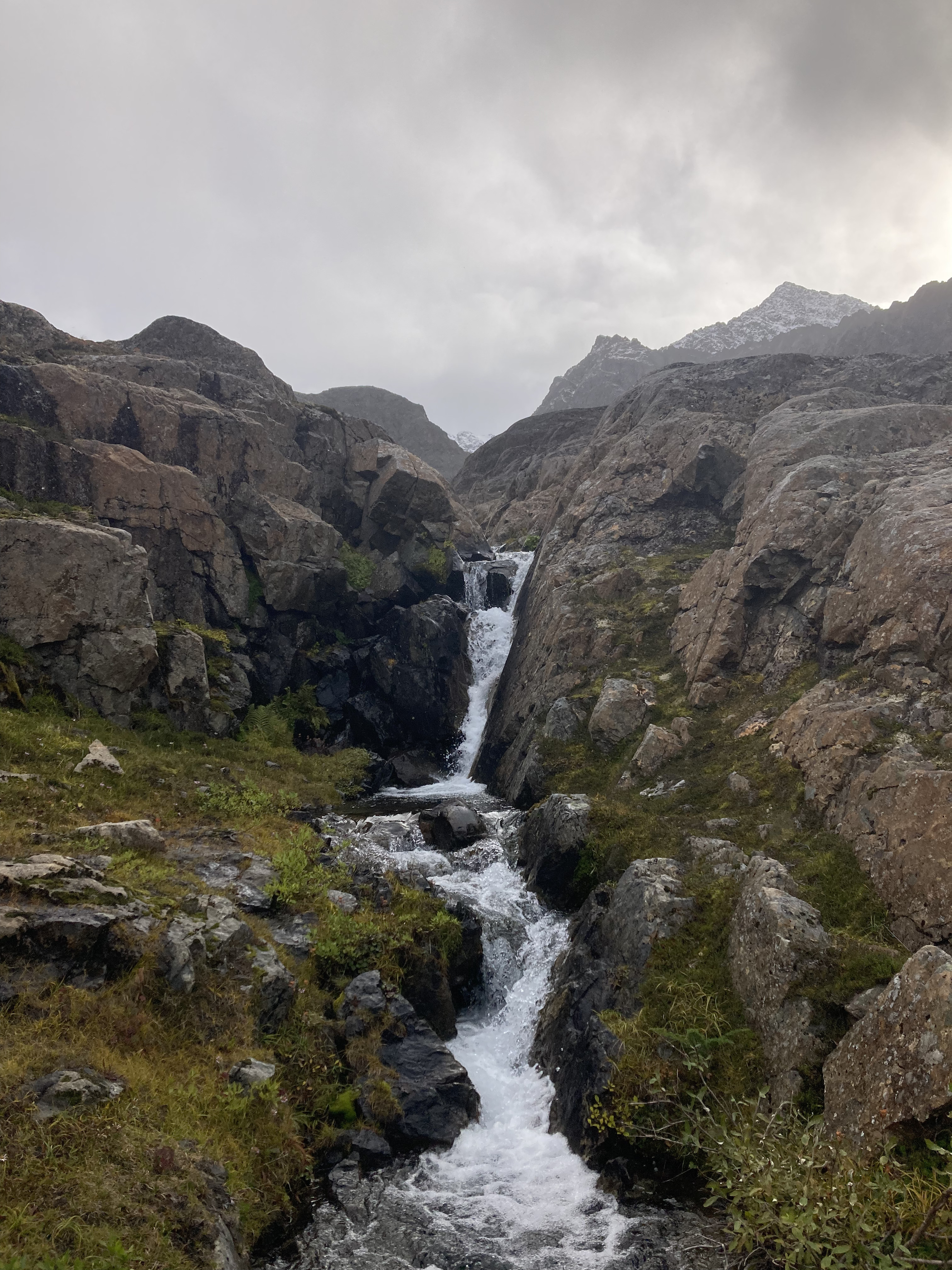 I got zero hours of sleep, I listened to my audiobooks about Julious Caesar for literally 8 hours. The winds in the night were very gusty, supposedly up to 64 kph and the wall of my too small tent kept hitting my head. I think however that I fared better than the other people that night, 2 people’s tents collapsed in the middle of the night. When I finally got up I ate a quick meal of my snacks and packed up all my stuff. For the first part of the second day we had a steep climb to get to the top of the drainage divide and head down into Long Lake valley. On this climb we were going through my favorite environment, the rocky high alpine. There was a very cool waterfall (almost Icelandic) pouring out of Walrus lake. We went to the top of the pass and ate lunch. At this point it was lightly raining and I was a little cold, while eating I think I saw a juvenile eagle (or maybe a hawk). After lunch we hiked down into the valley and, while following a creek, kind of skipped down to Long Lake. At the “delta” of the creek that flowed into Long Lake I saw about a 3 inch fish swimming about. And then we pretty quickly traveled down the valley of Long Lake (stopping for lunch) got to the point where we were going to camp for the second night, but after some deliberating we decided to push the last couple of miles and get home that night. I'm glad we did it, but it was tough.